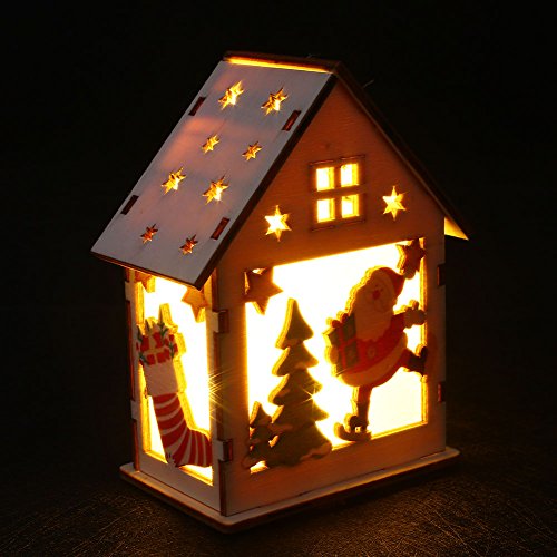 Kicode Xmas Colorful Christmas LED Light Luminous Wooden House Tree Hanging Ornament Pendant Baubles Decor
