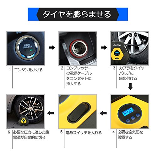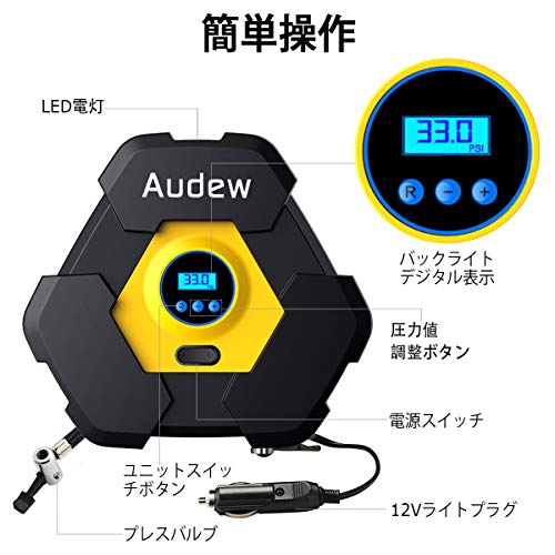 - ★【オートシャットオフ】 - AUDEWエアコンプレッサポンプで希望する圧力を設定し、「オン」ボタンを押すだけで、適切なタイヤ空気圧に達するとタイヤのインフレータが自動的に遮断されます。