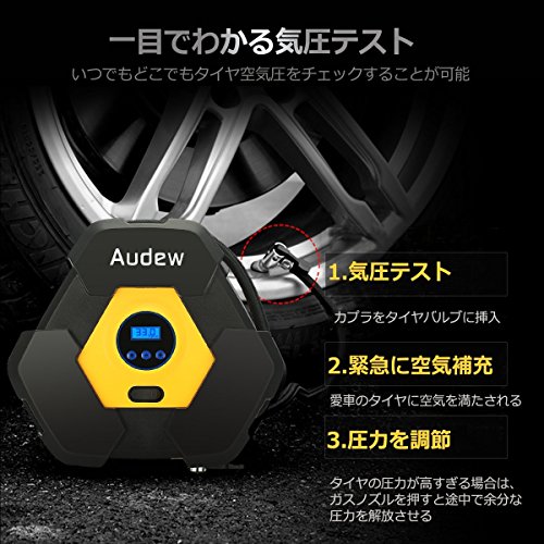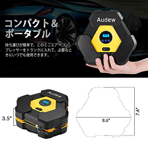 - ★【スペース節約】 - ポータブルコンパクト設計のAUDEWポータブルタイヤインフレータは持ち運びが容易で、持ち運びが簡単で、このミニエアーコンプレッサーをトランクに入れて、必要なときにいつでも使用できます。