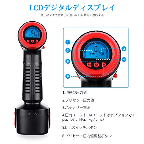 - ✔【簡単操作&自動制御】---膨張スイッチを押してタイヤを膨張させます。タイヤ空気圧がエアポンプの設定タイヤ空気圧値に達すると自動的に停止します。