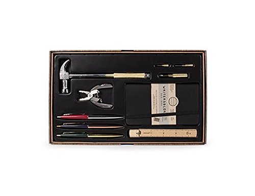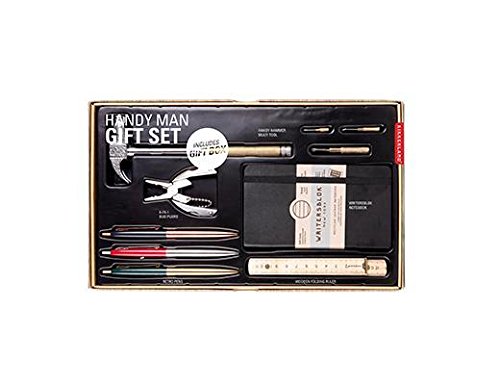 Handy Man Gift Set in Gift Box with Hammer Multi Tool / 6 in 1 Pliers Multi Tool / Retro Pens etc The ultimate gift for the handyman who has everything! Chosen with care, beautifully presented tools and gizmos for those who love their gadgets Set contains a handy brass and steel claw hammer with 4 concealed screwdrivers Plus bronze, silver and gold finish black ballpoint pens and leather bound jotter Smart steel 6-in-1 multi tool pliers, wire cutter etc and real beechwood folding ruler Everything you need for all those little jobs - home or office Box set measures 32cm x 19cm x 4cm (12.5" x 7.5" x 1.5")
