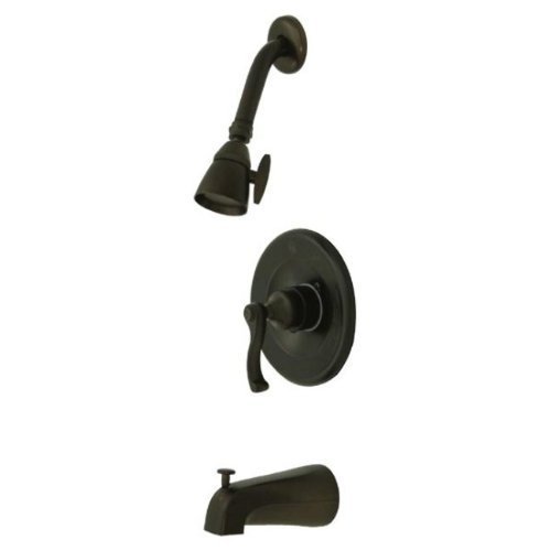 Color:Oil Rubbed Bronze Product Description Adopted from the traditional European design; the Royale tub and shower faucet look introduces a monarchial; dignified style. The set includes a 7-Inch shower head (connected with arm); a French scroll single handle lever mounted on a 7-Inch wide wall flange and a 5-Inch diverter tub spout. The faucet is constructed from solid brass and made in oil-rubbed bronze to prevent tarnishing; scratching or peeling. It also uses a pressure balanced washer less cartridge to provide long-lasting usage. From the Manufacturer Adopted from the traditional European design; the Royale tub and shower faucet look introduces a monarchial; dignified style. The set includes a 7-Inch shower head (connected with arm); a French scroll single handle lever mounted on a 7-Inch wide wall flange and a 5-Inch diverter tub spout. The faucet is constructed from solid brass and made in oil-rubbed bronze to prevent tarnishing; scratching or peeling. It also uses a pressure balanced washer less cartridge to provide long-lasting usage.