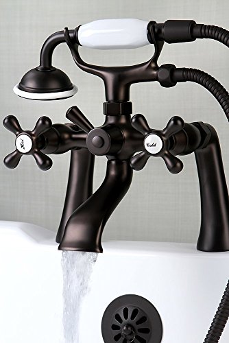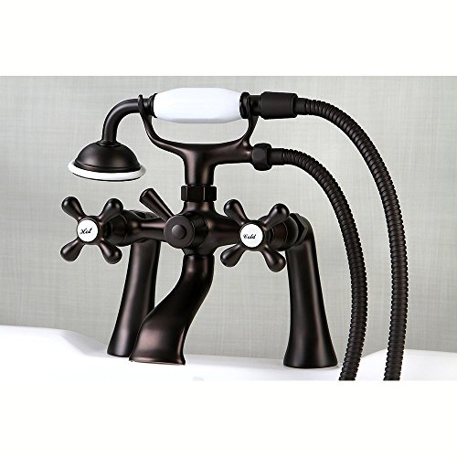 Color:Oil Rubbed Bronze Product Description Includes mounting hardware and hand shower. Contemporary style. Standard US plumbing connections. 1/4-turn ceramic disk cartridge. Vacuum breaker backflow prevention. Tub deck mount with 7 in. spread. 2.4 GPM (9 LPM) Max at 60 PSI. Warranty: 10 years. Made from brass. Made in Taiwan. Assembly Instructions. From the Manufacturer Featuring with Unique Design Elements, Kingston Brass Faucets are in a Timeless Appeal as well as Reliable Performance for Today's Bathrooms. That Makes Showering a Pleasant and Enjoyable Experience for Users. Price offerings are available at a Very Competitive and Affordable Level that makes purchases irresistible. Different Designer Styles of Handles and Finishes are Available. Timeless Design offered you with a solution for both premiere home decor and legendary durability. All products come with a generous product warranty. Many Hardware Accessories are made to match faucets to complete your home into a designer estate.