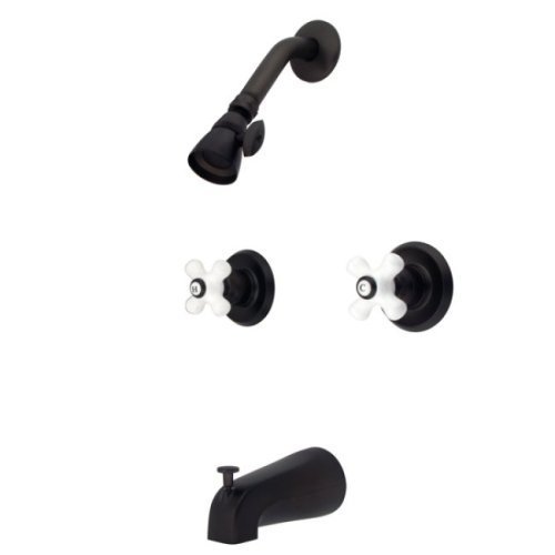 Kingston Brass KB245PX Magellan Tub and Shower Faucet Porcelain Cross Handles, Oil Rubbed Bronze [並行輸入品]