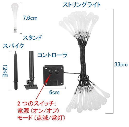- 【商品仕様】:LED:30球 総長:約6m 電球の間:0.15M 重量:約0.35kg ソーラーパネル:2V 100MA