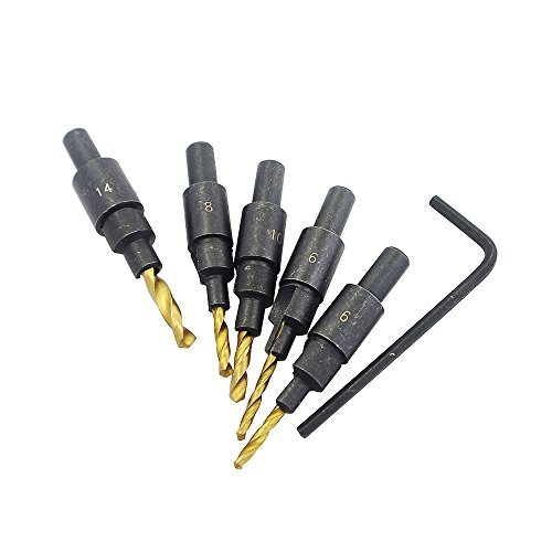 Yakamoz 5 PCS Woodworkers Countersink Drill Bit Set #6 #8 #10 #12 # 14 Counterbore Counter Bit [並行輸入品]