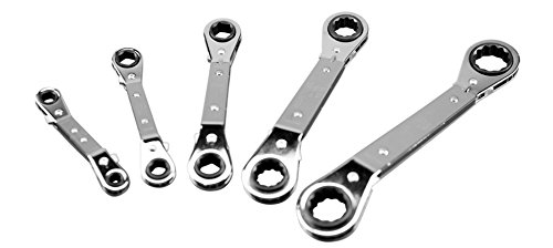 - Five ratcheting box wrenches packed in a vinyl 8 1/2-Inch W x 10-Inch H (216mm x 254mm) roll-up pouch with individual pockets