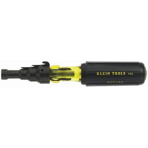 Replaceable reaming blade is now held in place with a 1/16- inch hex socket set screw. The Klein Tools Conduit-Fitting and Reaming Screwdriver can ream and smooth 1/2'' (13 mm), 3/4'' (19 mm), and 1'' (25 mm) thin-wall conduit. It features a hooded-blade design that keeps the screwdriver tip from slipping out of screws, which is especially handy when tightening hard-to-reach conduit fittings. This screwdriver has a longer Cushion-Grip handle for even more comfort and torque while reaming.