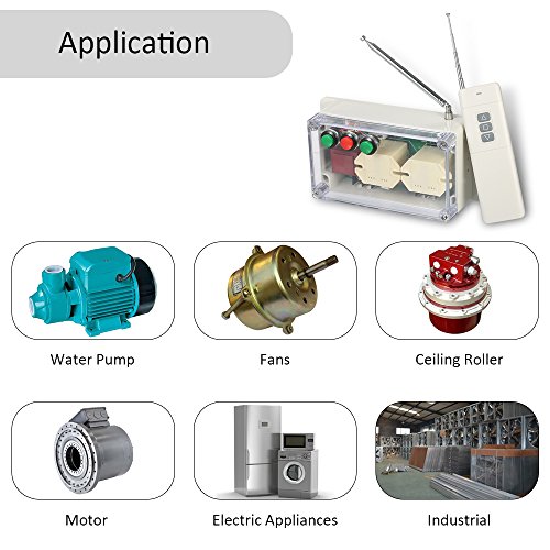 この高出力ACモータコントローラは高出力の電気機器の長期的で安定の制御を保証できます。ウォーターポンプ、天井ローラー、モーター、電化製品、ランプとランタン、工業および他のリモートワイヤレスコントローラに適用する多機能ワイヤレスリモートコントロールスイッチは、モーター速度の素敵な調整を提供できるものです。セルフロックモードとインチングタイプの制御モードで、ユーザーは自由に切り替えることができます。