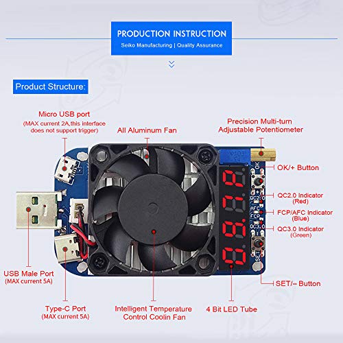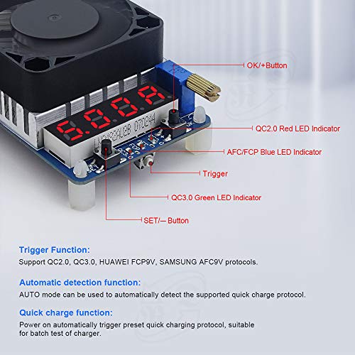 - ★サポートの主流:5V / 9V / 12V / 20Vおよび他の急速充電電圧をトリガーできるQC2.0、QC3.0、AFC、FCP急速充電プロトコルをサポートし、デジタル製品プレーヤーが急速充電の性能をテストするのに便利ですデータケーブルおよび他の製品、ならびに製品のバルクエージングおよび品質試験を行う工場を含む
