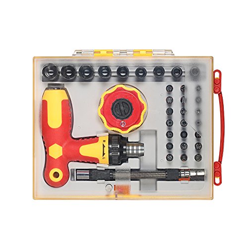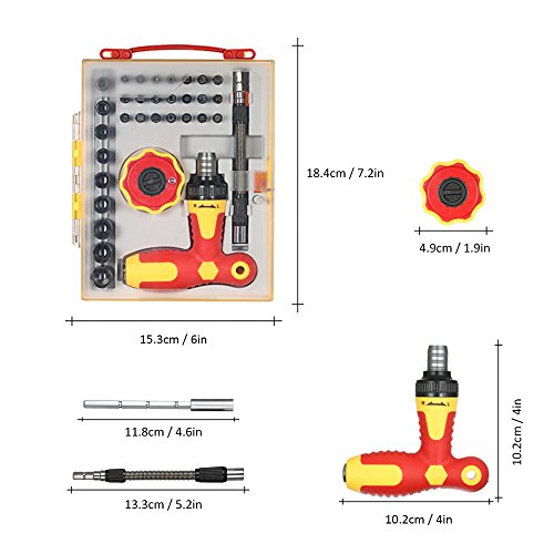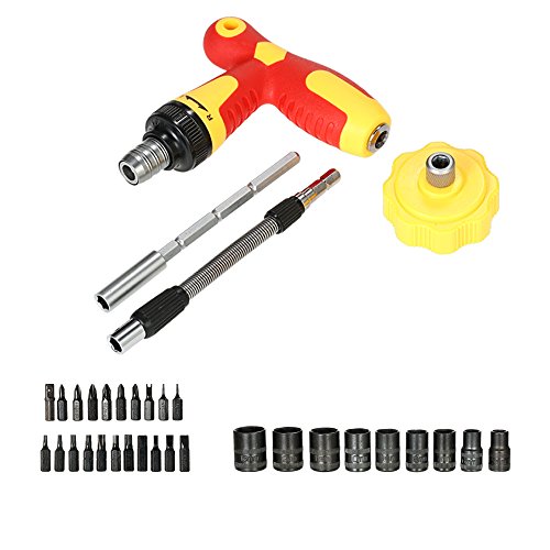 KKmoon 34本セット 多機能 ドライバー&ソケット&ビット セット 六角形 トルクス 溝付き プラス/マイナス ビットでセット 電工修理ツールキット