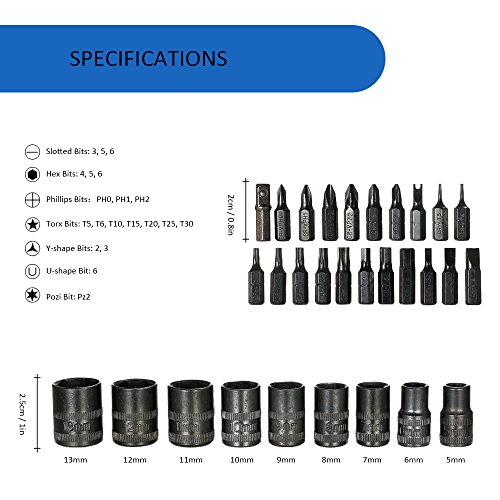 - ★20pcsのビットと9pcsのソケットが含まれています。さまざまな電気的要求を満たすことができます。