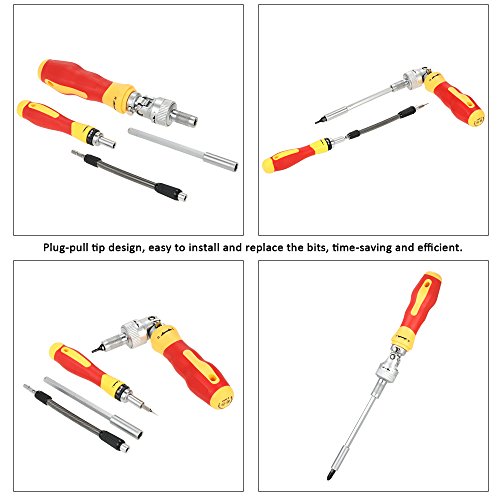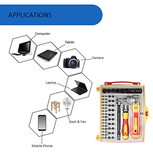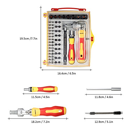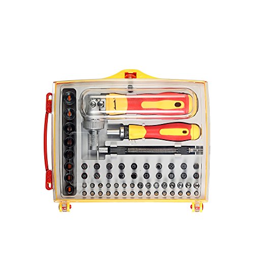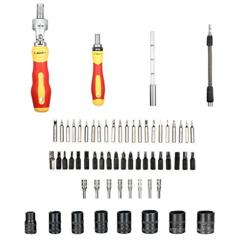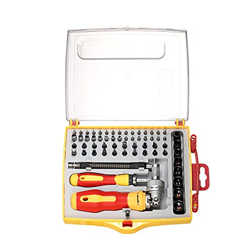 KKmoon 62本セット 多機能 ドライバー&ソケット&ビット セット 0°/45°/90°回転可能 六角形 トルクス溝付き プラス/マイナス ビットでセット 電工修理ツールキット