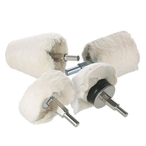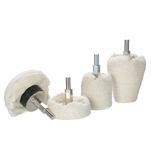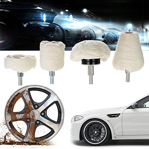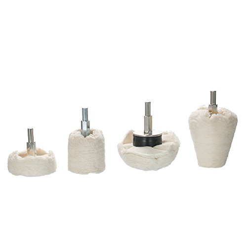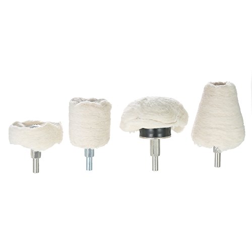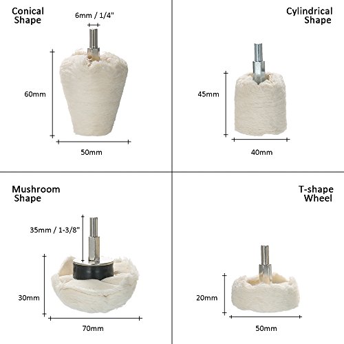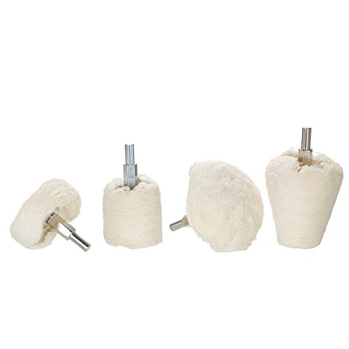 KKmoon 4点セット ポリッシャー用 電動ドリル用 研磨パッド 研磨ヘッド モップホイール 円錐/円柱/キノコ/ T型 軸付き 金属 ジュエリー ウッド プラスチック セラミック ガラス適用 洗車 垢取り 傷磨き