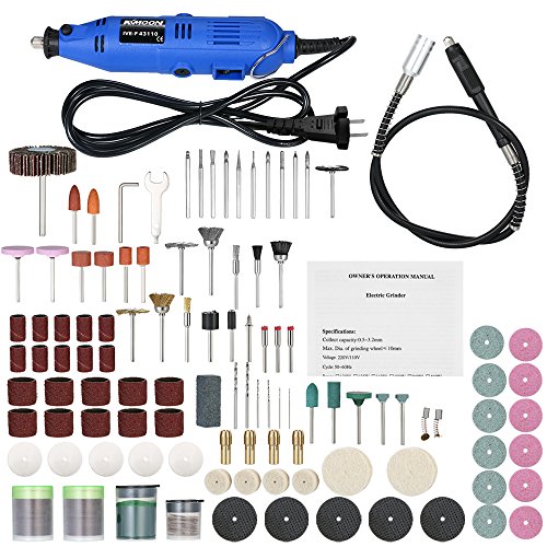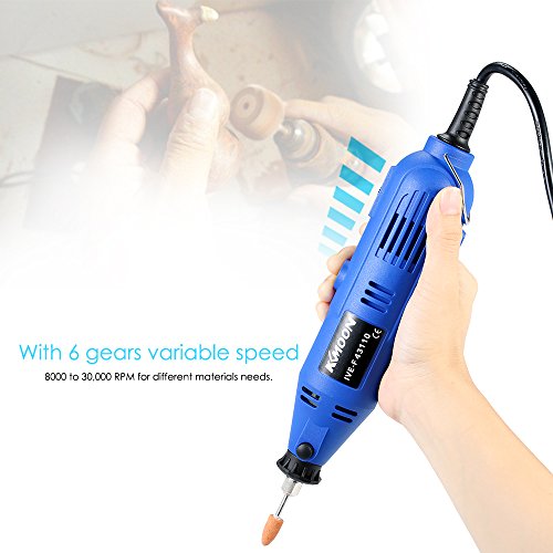 KKmoon 多機能 プロ ミニルーター セット 6段階可変速度 197個アクセサリー付き 研磨 研削 彫刻 艶出し 仕上げ 穴開け工具 電動グラインダーセット ロータリツール AC110V