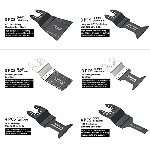 このプロで互換性のあるカッティングブレードキットは、20pcsの振動刃を備えて、マルチツール用に設計されています。高炭素鋼振動鋸刃は、木材、プラスチックおよび石膏ボードの切断に使用されます。バイメタル振動鋸刃は、木材、プラスチック、石膏ボード、小さな釘、薄い鉄とわずかなアルミニウム合金の切断に使用されます。