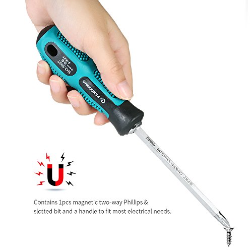 - 1個の磁気式双方向フィリップス&スロット付きビットと、ほとんどの電気的要求に適合するハンドルが含まれています。