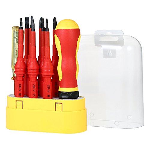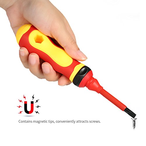 KKmoon 10個 500V ドライバーセット 多機能 絶縁スクリュードライバー 磁気スリット付き フィリップス付き Torxビット テストペンシル 電気工事 修理ツールキット
