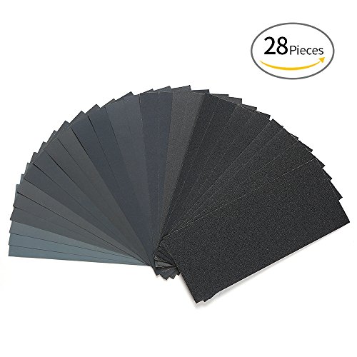 KKmoon 28枚セット 紙ヤスリ サンドペーパー 120-3000粒度 9 * 3.6インチ 木製家具 湿式/び乾式サンディング 金属サンド 自動車 研磨 仕上げ