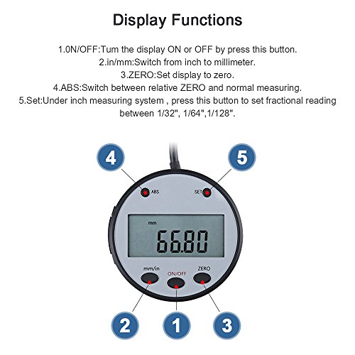- ▲LCDディスプレイインチ、小数、分数、メトリックの読み取り値を表示しやすいです。遠隔読取り表示、読み込みと操作が容易。