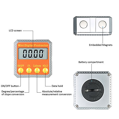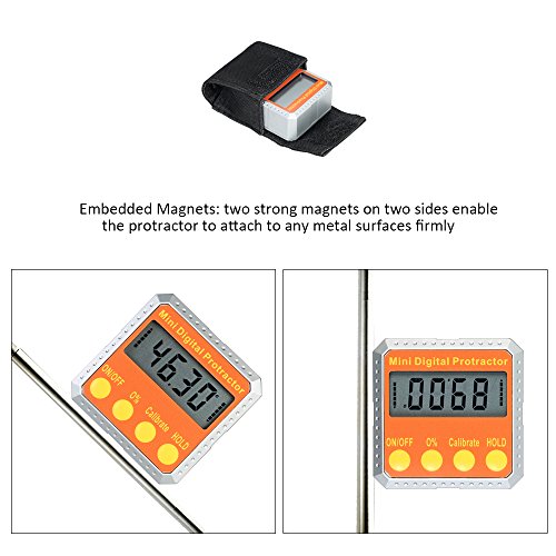 - ★内蔵のマグネット:2つの側面に2つの強力な磁石があるので、分度器を金属表面にしっかりと取り付けることができます。データ保持機能と低消費電力表示の機能も備えています。