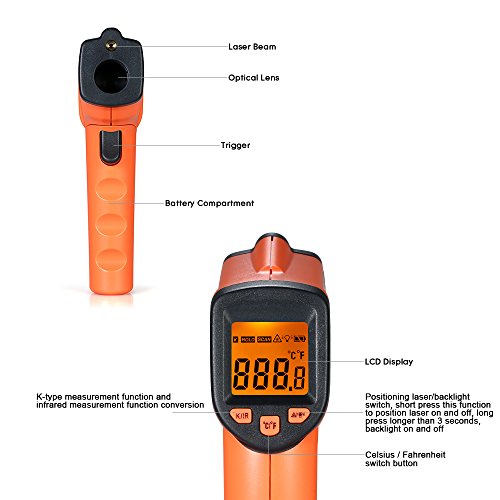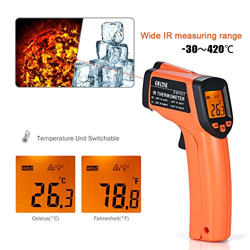 KKmoon 非接触 IR 赤外線温度計 -30〜420℃ ハンドヘルド LCDディスプレイ デジタル温度テスターパイロメーター バックライト付き