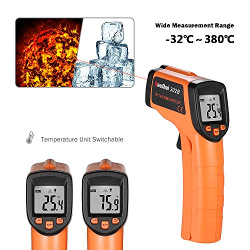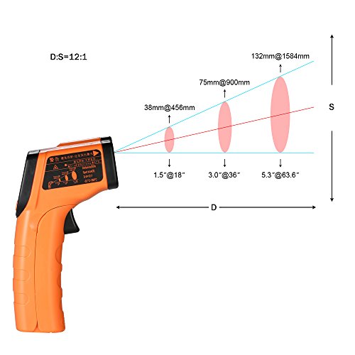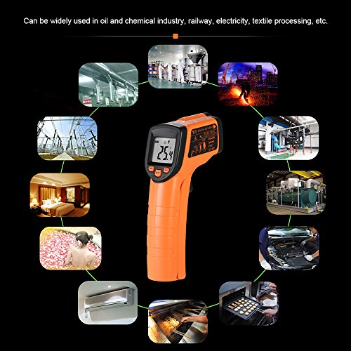 KKmoon -32〜380℃ 赤外線温度計 ハンドヘルド 非接触 12:1 デジタル 赤外線温度テスター パイロメーター 摂氏華氏調節可能 LCDディスプレイ バックライト付き