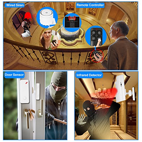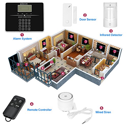 KKmoon 433MHz wifiドア警報防犯セット SMSアラームセキュリティシステム オートダイヤルGSM + PSTN 無線アラームパネル・PIRモーションセンサー・2*ドアセンサー・有線サイレンキット 電話APPリモーコン