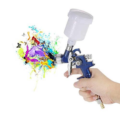 KKmoon エアスプレーガン 口径1.0mm ミニ HVLP 重力フィード エアブラシキット 家具 塗装 自動車補修 仕上げ ペイント スポット修理 スプレーャー