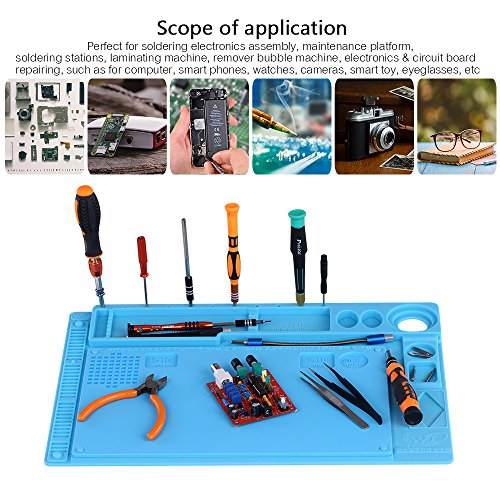 エレクトロニクスアセンブリ&エレクトロニクスおよび回路基板修理のはんだ付けのためのすばらしいツールです。作業効率を向上させ、メンテナンスプラットフォームをより清潔できれいにするために、スケールルーラーと複数のノッチを備えて設計されています。また、最高500℃の耐熱性がプラットフォームを十分に保護します。