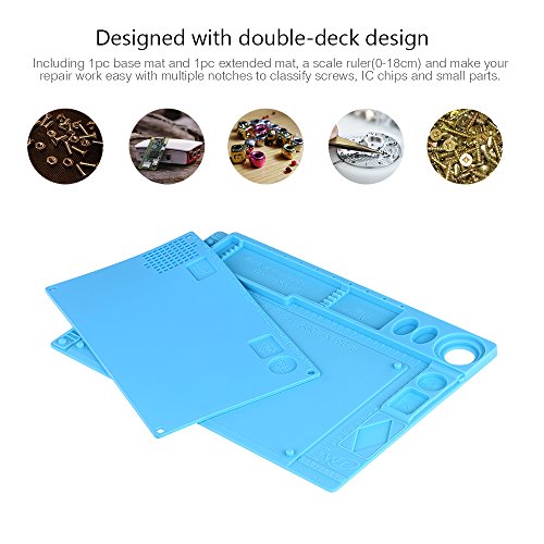 KKmoon 2-in-1 シリコン ベースマット+延長マット 断熱パッド 作業マット 500℃耐熱性 高温保守作業 修理 溶接 BGAはんだ付け用 修理はんだステーションマット