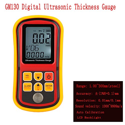 KKmoon GM130 デジタル 超音波 厚さ計 1.00〜300mm 深さゲージ+音速計 LCDバックライト付き 厚さテスター 深度メーター