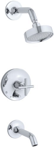 Color:Chrome Product Description Purist faucets combine simple, architectural forms with sensual design lines and careful detailing. Both sculptural and functional, this Rite-Temp bath and shower trim promises an inviting visual appeal of classic modernity, and features a 35-degree bath spout and cross handle. From the Manufacturer Purist faucets combine simple, architectural forms with sensual design lines and careful detailing. Both sculptural and functional, this Rite-Temp bath and shower trim promises an inviting visual appeal of classic modernity, and features a 35-degree bath spout and cross handle.