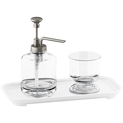 - セット内容:ガラス製ソープディスペンサーやガラスのタンブラーと、セラミックトレイ