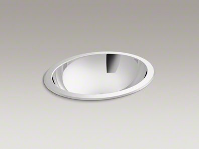 K-2608-MU-NA Finish: Mirror Features: -Oval basin.. -No faucet holes; requires wall- or counter-mount faucet.. -Fits standard 14- x 17-inch countertop cutout.. -Undermount or drop-in.. -20-gauge stainless steel.. Installation Type: -Undermount sink. Style: -Modern. Sink Shape: -Oval. Material: -Metal. Number of Faucet Holes: -0. Dimensions: Overall Length - Side to Side: -19.88". Overall Width - Front to Back: -16.69". Overall Depth - Top to Bottom: -19.88". Overall Product Weight: -7.9 lbs. Basin Length - Side to Side: -17.38". Basin Width - Front to Back: -14". Basin Depth - Top to Bottom: -5.38".