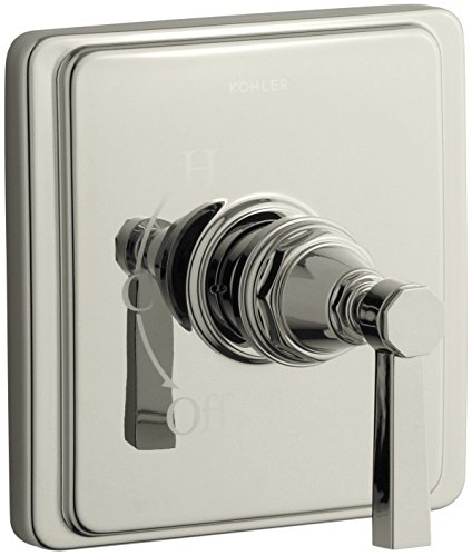 K-T13135-4A-SN Finish: Vibrant Polished Nickel Features: -Pressure-balancing valve.-Rite-temperature pressure-balancing technology maintains water temperature within +/-3 degrees fahrenheit.-High-temperature limit stop allows you to preset a comfortable maximum temperature to eliminate scalding.-ADA compliant.-Completes Pinstripe design solution with fixtures and accessories.-Trim only, required rough-in valve K-304-KS not included. Dimensions: -Dimensions: 7'' H x 6.69'' W.