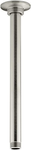 Kohler K-7392-BN 12' Ceiling Mount Showerarm, Vibrant Brushed NickelThe new Kohler 12' ceiling mount showerarm provides an affordable and scalable showering solution that coordinates designs and finishes with the rest of the Kohler faucets and accessories. Designed to provide a complimentary solution to any remodel or complete bathroom installation. Our 12' showerarm and flange mounts straight to the ceiling to provide an option for showers requiring an alternative installation height.Kohler K-7392-BN 12' Ceiling Mount Showerarm, Vibrant Brushed Nickel Features: Solid brass construction ensures durability and reliability Ceiling-mount Includes flange 1/2 Inch NPT connections 12 Inch (30.4 cm) straight length Kohler limited lifetime warranty* Image shown may vary by color, finish, or material