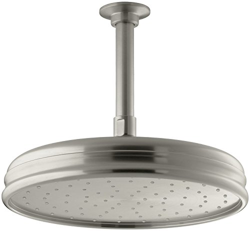 Color:Vibrant Brushed Nickel Product Description Kohler K-13693-BN 10' Traditional Round Rain Showerhead, Vibrant Brushed NickelThe new Kohler Rainhead collection delivers the most comprehensive offering of rain showerheads available in the market today, providing an affordable and scalable showering solution that coordinates designs and finishes with the rest of the Kohler faucets and accessories.Kohler K-13693-BN 10' Traditional Round Rain Showerhead, Vibrant Brushed Nickel Features: Elegant traditional styling creates the perfect complement to any period inspired custom shower installation Superior spray performance with Katalyst Spray Technology delivers a luxurious and drenching 'rain' experience Optimized sprayface design creates a denser uniform spray pattern for consistent coverage and feeling of warmth MasterClean sprayface with translucent nozzles resists mineral buildup and ensures reliable performance for years to come 2.5 gallons per minute flow rate Solid brass construction ensures durability and reliability Comprehensive Finish Offering compliments Kohler's complete faucet and accessory program Kohler Lifetime Limited Warranty From the Manufacturer The new KOHLER Rainhead collection delivers the most comprehensive offering of rain showerheads available in the market today, providing an affordable and scalable showering solution that coordinates designs and finishes with the rest of the KOHLER faucets and accessories.
