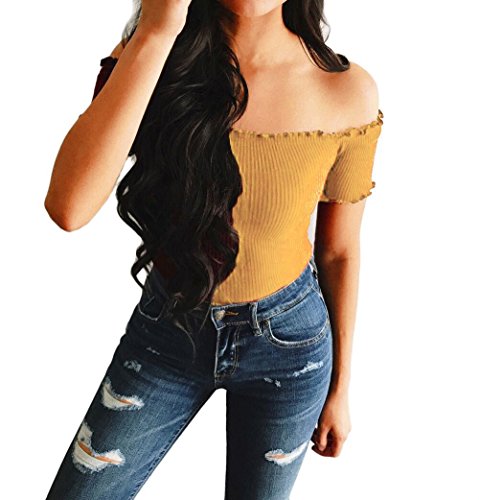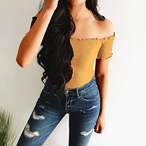 トップス レディース 夏 Kohore シャツチュニック 綿 ブラウス ロング 半袖 可愛い ゆったり 体型カバー オフショルダー 肩出し おしゃれ セクシー 無地 5色 s-xl 大きいサイズ 上着 春 秋 women ゆるtシャツ (M, 黄色)