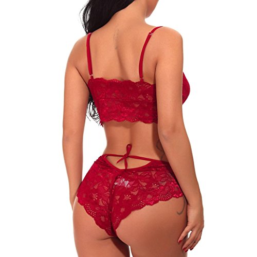 Kohore レディース tバック セット セクシー 総レース 花柄 無地 2点セット シースルー 透け 過激 ビキニ 水着 温泉 キャミソール ブラ ショーツセット 安い ランジェリー 勝負下着 女性 エロ プレゼント (M, ワインレッド)