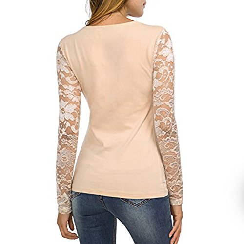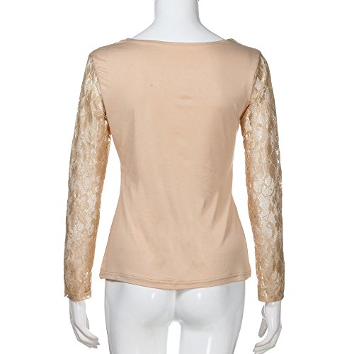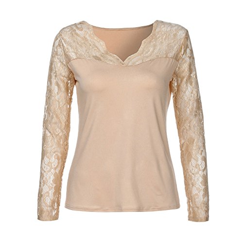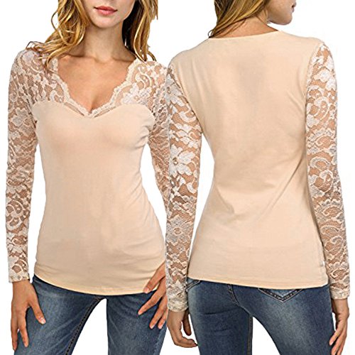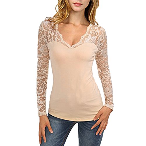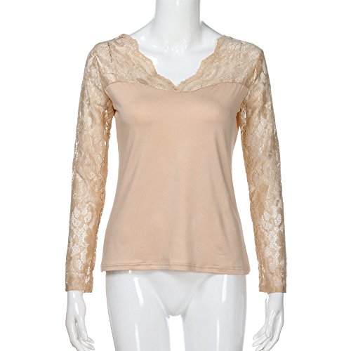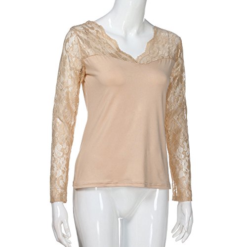 Kohore レディース 春夏秋 レース 長袖 スリム セクシー カジュアル Vネック トップス (S, カーキ)