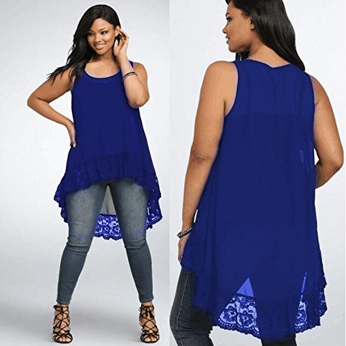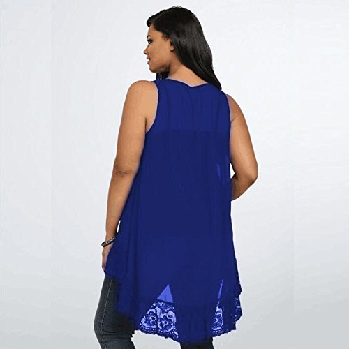 トップス レディース 夏 Kohore シャツチュニック シャツ ロング シフォン 可愛い ゆったり 体型カバー セクシー かわいい ノースリーブ Tシャツ 無地 4色 xl-6l 3l 4l 大きいサイズ おしゃれ きれいめ 上着 セクシー 春 秋 ブラウス women ゆるtシャツ (XXXXXXL, 青)