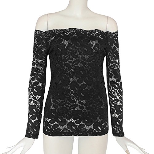 トップス レディース 夏 Kohore Tシャツ 長袖 uネック シャツチュニック レース 花柄 シースルー セクシー ブラウス 可愛い ゆったり 体型カバー おしゃれ 多色 無地 s-xl 大きいサイズ 上着 春 秋 women ゆるtシャツ (S, 黑)