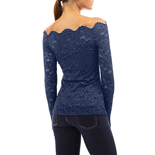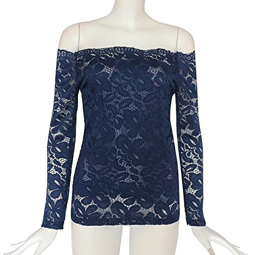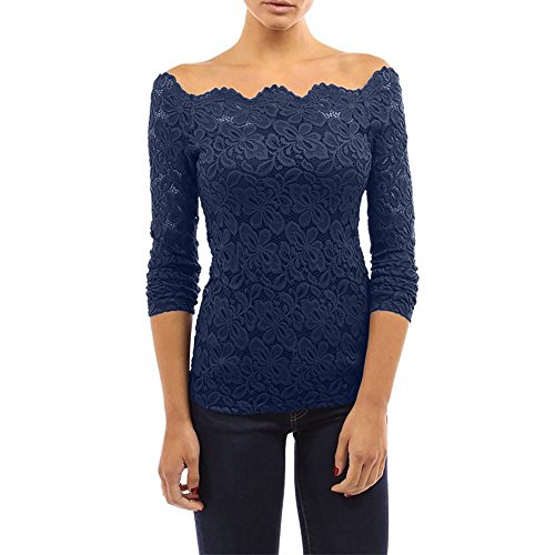 トップス レディース 夏 Kohore Tシャツ 長袖 uネック シャツチュニック レース 花柄 シースルー セクシー ブラウス 可愛い ゆったり 体型カバー おしゃれ 多色 無地 s-xl 大きいサイズ 上着 春 秋 women ゆるtシャツ (XL, 青)
