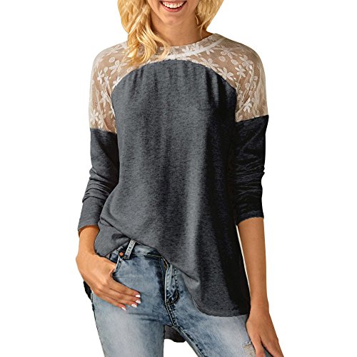 トップス レディース 夏 Kohore セクシー tシャツ レディース 長袖 レース 花柄 ボウタイ シースルー シャツ 綿 オフィス おしゃれ 着痩せ s-ll 大きいサイズ 部屋着 シャツチュニック ブラウス プレゼント (M, 灰色)