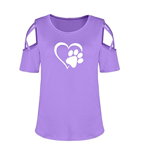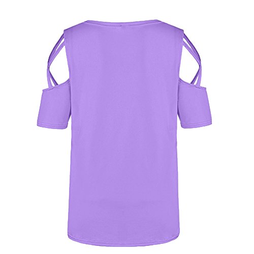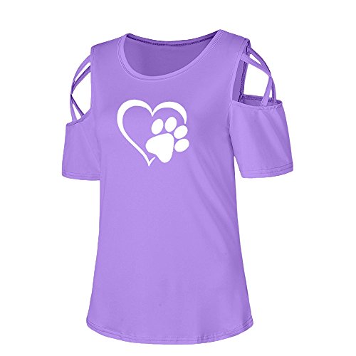 tシャツ レディース 夏 Kohore おしゃれ シャツ レディース トップス 半袖 丸首 肩出し プリント かわいい 着痩せ 多色 s-2l 大きいサイズ スポーツ 通勤 カジュアル 人気 ブラウス シャツ 部屋着 上着 プレゼント (XL, 紫)