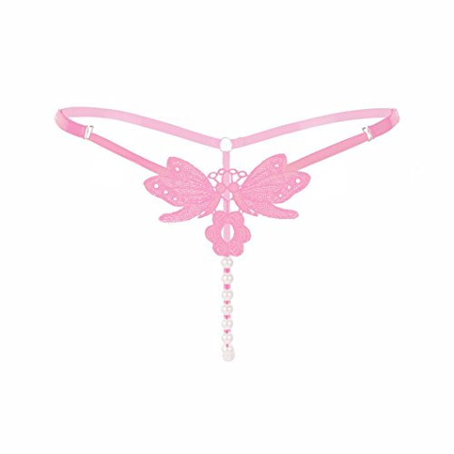 Kohore Tバックセット パール付け レディース エロ下着 シースルー 刺繍 蝶結び ナイトウェア キャミソール Tバックパンティ セット セクシー パジャマ Tバックパンティー シースルー Tショーツ 過激 レース Gストリング 美尻 プレゼント エロブラ (フリーズサイズ, ピンク)