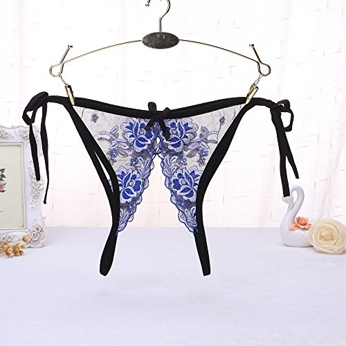 Kohore セクシー レディース パンティ Tバック シースルー 穴開き クロッチなし レース 花柄 ボウタイ 過激 ひもパン ランジェリー フリーズサイズ パンツ 誘惑 エッチ Tショーツ エロ かわいい 女性 パンティー Gストリング プレゼント (フリーズサイズ, 青)