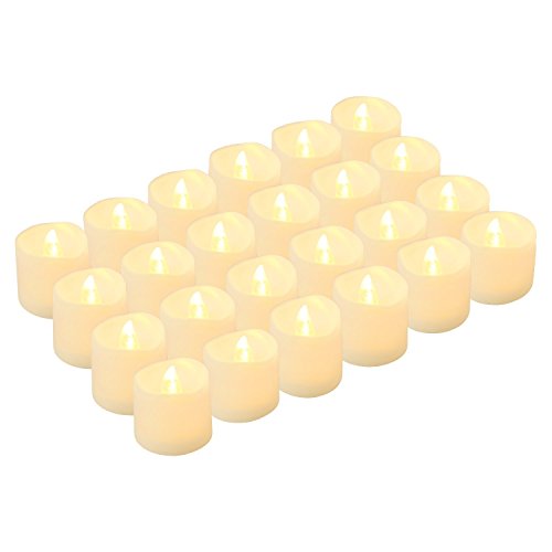 - *素敵でロマンチックな無香料の電24個組直径1.4インチ x 高さ1.3インチ。本物の炎のように揺らぎます。LED電球は熱を持たず、10,000時間長持ちします。