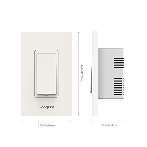 1で構成されています。Koogeekスマートスイッチ1つの極置き換えスイッチのみであることに注意してください。との互換性はありません3ウェイスイッチ、制御されたから複数の位置を確認してください。